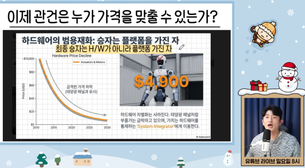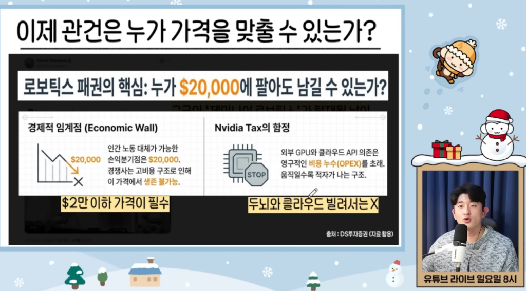 로봇 상용화의 핵심은 ‘손익분기점(약 2만 달러)’을 맞추는 것입니다.