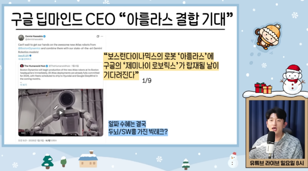 로봇 제조는 현대차 등이 하지만, 핵심 두뇌(AI)와 소프트웨어는 결국 엔비디아와 구글 같은 빅테크가 장악하여 실속을 챙길 가능성이 높습니다.